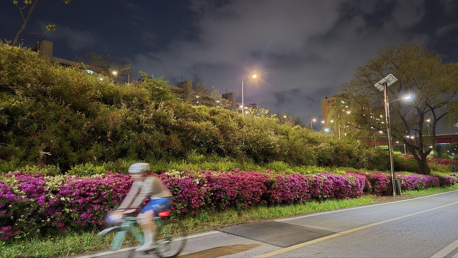 야간 걷기를 하는 사람들. 늦은 밤이지만 오운완을 위해 열심히 운동 중인 사람들. 아름다운 봄의 꽃향기와 싱그러움은 덤으로 즐길 수 있다.