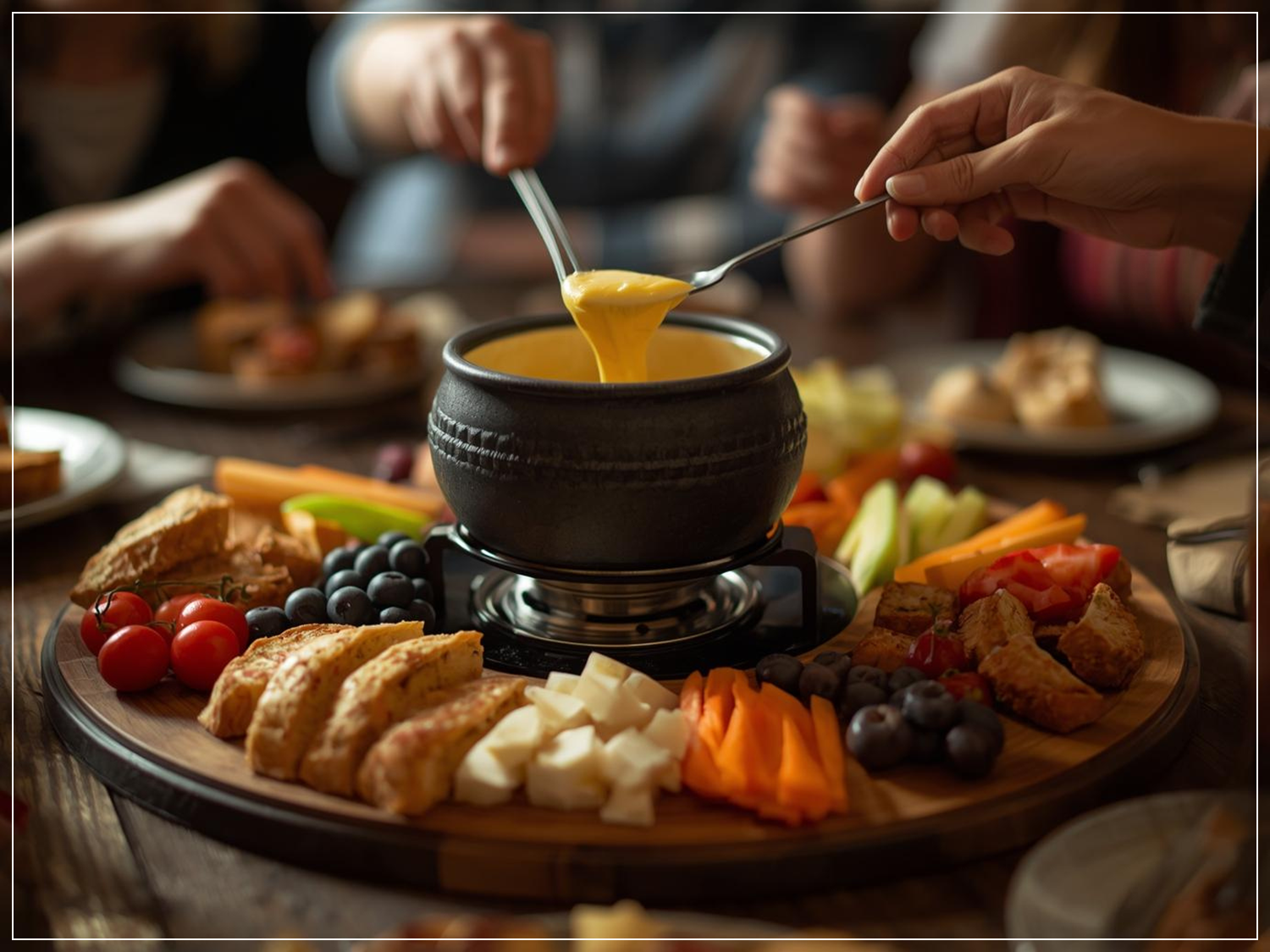 어느 추운 밤, 모닥불을 피운 목동들은 딱딱하게 굳은 치즈를 불에 녹여 빵을 찍어 먹기 시작했다. 이것이 **퐁뒤(fondue)**의 탄생이었다. '녹이다'라는 뜻의 프랑스어 'fondre'에서 유래한 이름처럼, 퐁뒤는 알프스의 얼어붙은 겨울 속에서 따뜻함을 '녹여낸' 음식이었다.