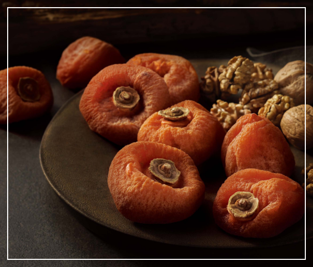 제철 과일을 말려 단맛을 응축하고, 시간과 바람의 손길로 쫀득한 질감을 완성합니다. 설탕이 귀하던 시절, 곶감은 자연이 허락한 가장 자연에 가까운 스위트한 단맛이었습니다. 궁중의 귀한 다과부터 농가의 소박한 간식까지, 곶감은 언제나 우리 식탁에서 은은한 ‘여백의 미식’으로 존재해 왔습니다.