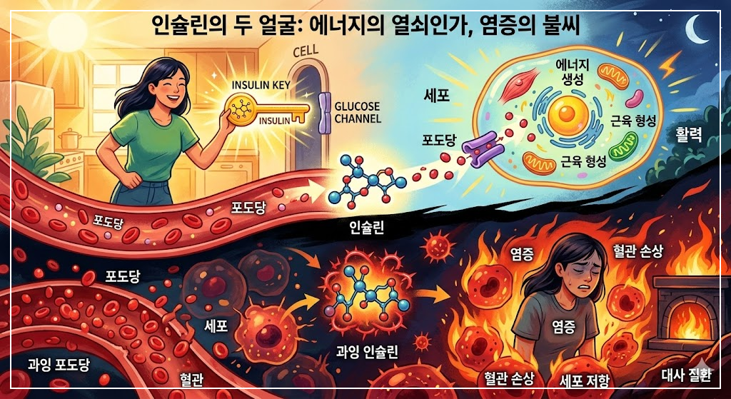 🔥1. 인슐린의 두 얼굴: 에너지의 열쇠인가, 염증의 불씨인가