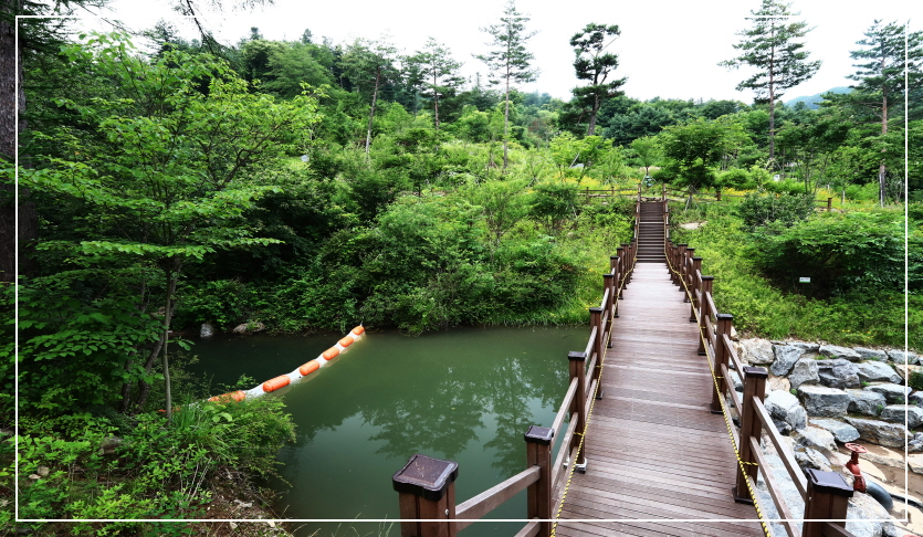 물 맑음 수목원의 백미는 ‘체험형 치유 공간’이다. 맨발로 걷는 흙길 ‘치유의 숲길’은 단순한 산책을 넘어 감각을 일깨우는 맨발 치유경험이다. 발바닥에 닿는 자갈의 감촉과 숲의 정적은, 잠시나마 일상에서 벗어난 몰입을 가능하게 한다. 이처럼 몸으로 느끼는 자연명상 은 정원을 ‘경험의 장’으로 확장시키는 새로운 방식이다.